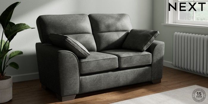 7.3.1 Buy Stamford Highback 2 Seater Small Sofa Plush Chenille Dark Grey Large Square Angle - Gunmetal from the Seasons online shop Click here to use our website with more accessibility support, for example screen readers