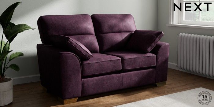 7.3.1 Buy Stamford Highback 2 Seater Small Sofa Plush Chenille Dark Plum Purple Large Square Angle - Brushed Brass from the Seasons online shop Click here to use our website with more accessibility support, for example screen readers