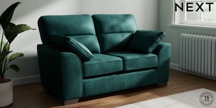 7.3.1 Buy Stamford Highback 2 Seater Small Sofa Plush Chenille Dark Teal Green Large Square Angle - Gunmetal from the Seasons online shop Click here to use our website with more accessibility support, for example screen readers