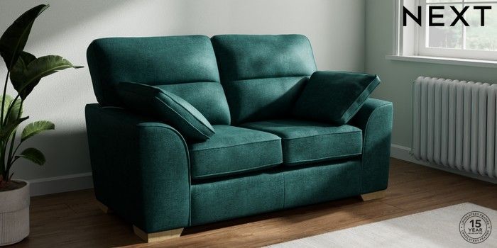 7.2.10 Buy Stamford Highback 2 Seater Small Sofa Plush Chenille Dark Teal Green Large Square Angle - Light from the Seasons online shop Click here to use our website with more accessibility support, for example screen readers