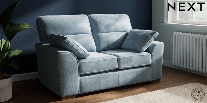 7.2.10 Buy Stamford Highback 2 Seater Small Sofa Plush Chenille Light Blue Large Square Angle - Mid from the Seasons online shop Click here to use our website with more accessibility support, for example screen readers