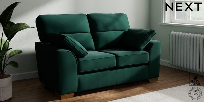 7.3.1 Buy Stamford Highback 2 Seater Small Sofa Plush Velvet Easy Clean Bottle Green Large Square Angle - Brushed Brass from the Seasons online shop Click here to use our website with more accessibility support, for example screen readers
