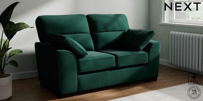 7.3.1 Buy Stamford Highback 2 Seater Small Sofa Plush Velvet Easy Clean Bottle Green Large Square Angle - Dark from the Seasons online shop Click here to use our website with more accessibility support, for example screen readers