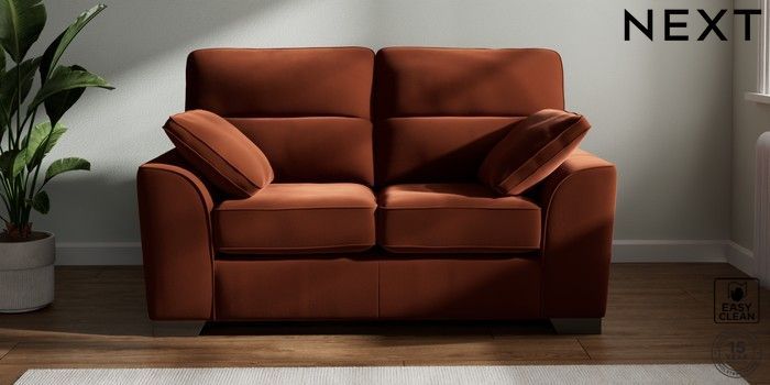7.3.1 Buy Stamford Highback 2 Seater Small Sofa Plush Velvet Easy Clean Ginger Orange Large Square Angle - Gunmetal from the Seasons online shop Click here to use our website with more accessibility support, for example screen readers