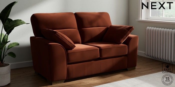 7.3.1 Buy Stamford Highback 2 Seater Small Sofa Plush Velvet Easy Clean Ginger Orange Large Square Angle - Mid from the Seasons online shop Click here to use our website with more accessibility support, for example screen readers