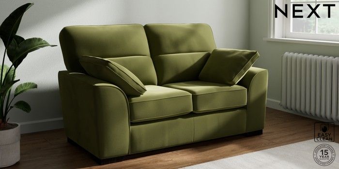 7.3.1 Buy Stamford Highback 2 Seater Small Sofa Plush Velvet Easy Clean Mid Olive Green Large Square Angle - Dark from the Seasons online shop Click here to use our website with more accessibility support, for example screen readers