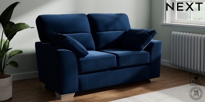 7.3.1 Buy Stamford Highback 2 Seater Small Sofa Plush Velvet Easy Clean Navy Blue Large Square Angle - Chrome Metal from the Seasons online shop Click here to use our website with more accessibility support, for example screen readers