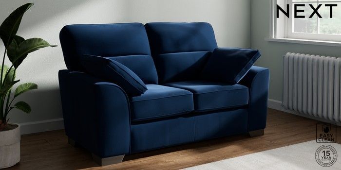 7.3.1 Buy Stamford Highback 2 Seater Small Sofa Plush Velvet Easy Clean Navy Blue Large Square Angle - Gunmetal from the Seasons online shop Click here to use our website with more accessibility support, for example screen readers