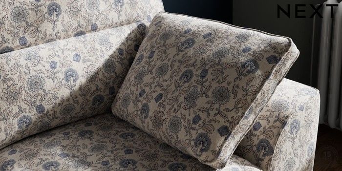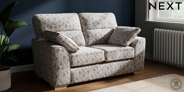7.3.1 Buy Stamford Highback 2 Seater Small Sofa Relaxed Linen Look Print Woodblock Floral Blue Large Square Angle - Light from the Seasons online shop Click here to use our website with more accessibility support, for example screen readers