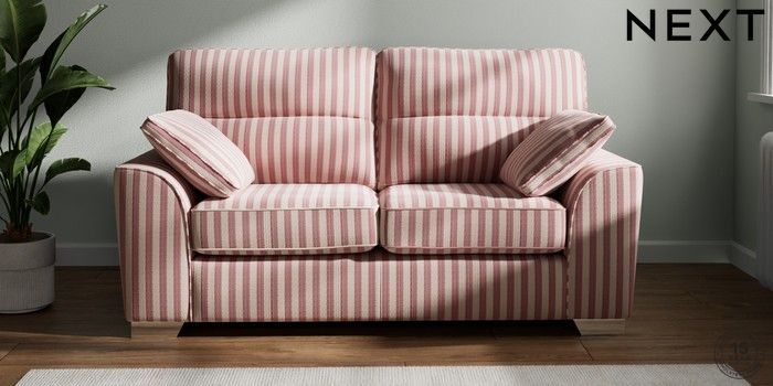 7.3.1 Buy Stamford Highback 2 Seater Sofa Bold Chenille Stripe Dark Pink Large Square Angle - Chrome Metal from the Seasons online shop Click here to use our website with more accessibility support, for example screen readers