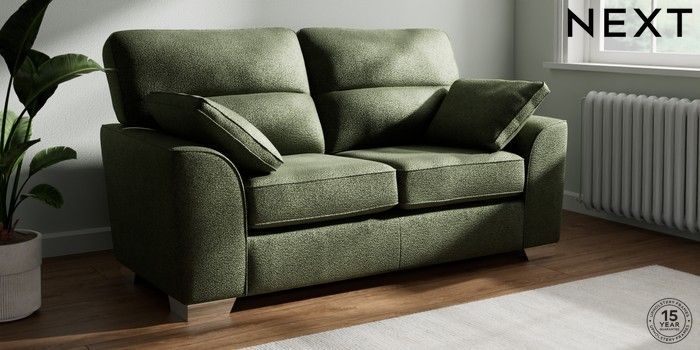 7.3.1 Buy Stamford Highback 2 Seater Sofa Boucle Chenille Dark Moss Green Large Square Angle - Chrome Metal from the Seasons online shop Click here to use our website with more accessibility support, for example screen readers