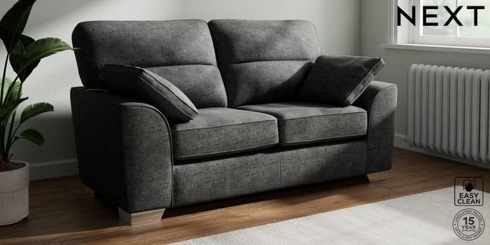 7.3.1 Buy Stamford Highback 2 Seater Sofa Boucle Weave Easy Clean Charcoal Grey Large Square Angle - Chrome Metal from the Seasons online shop Click here to use our website with more accessibility support, for example screen readers