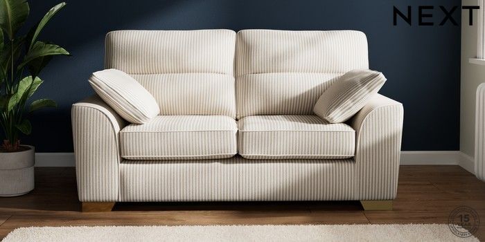 7.3.1 Buy Stamford Highback 2 Seater Sofa Chenille Stripe Natural Large Square Angle - Brushed Brass from the Seasons online shop Click here to use our website with more accessibility support, for example screen readers