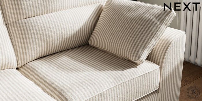 7.3.1 Buy Stamford Highback 2 Seater Sofa Chenille Stripe Natural Large Square Angle - Gunmetal from the Seasons online shop Click here to use our website with more accessibility support, for example screen readers
