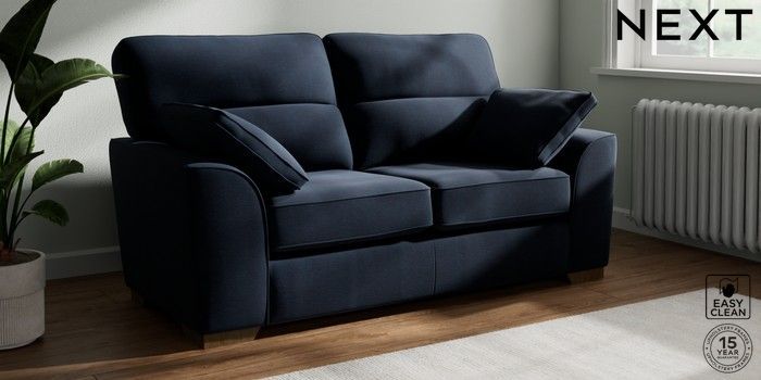 7.2.10 Buy Stamford Highback 2 Seater Sofa Fine Chenille Easy Clean Dark Navy Blue Large Square Angle - Mid from the Seasons online shop Click here to use our website with more accessibility support, for example screen readers