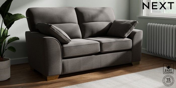 7.3.1 Buy Stamford Highback 2 Seater Sofa Fine Chenille Easy Clean Dark Smoke Grey Large Square Angle - Brushed Brass from the Seasons online shop Click here to use our website with more accessibility support, for example screen readers