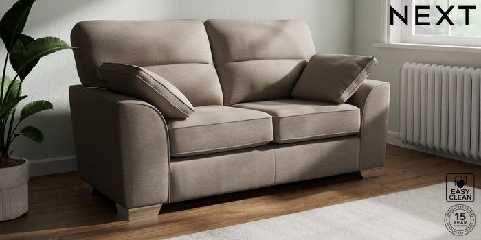7.3.1 Buy Stamford Highback 2 Seater Sofa Fine Chenille Easy Clean Mid Taupe Brown Large Square Angle - Chrome Metal from the Seasons online shop Click here to use our website with more accessibility support, for example screen readers