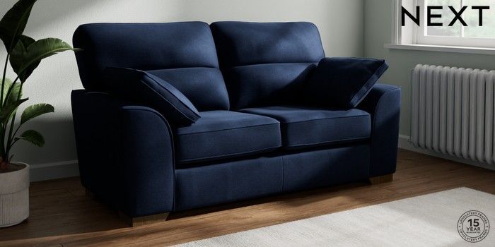 7.2.10 Buy Stamford Highback 2 Seater Sofa Luxe Chenille Navy Blue Large Square Angle - Mid from the Seasons online shop Click here to use our website with more accessibility support, for example screen readers