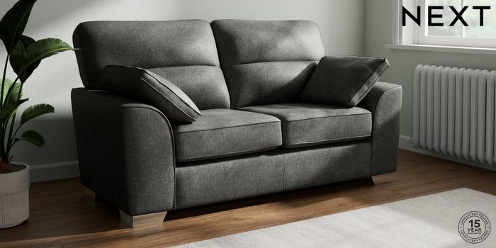 7.2.10 Buy Stamford Highback 2 Seater Sofa Plush Chenille Dark Grey Large Square Angle - Chrome Metal from the Seasons online shop Click here to use our website with more accessibility support, for example screen readers