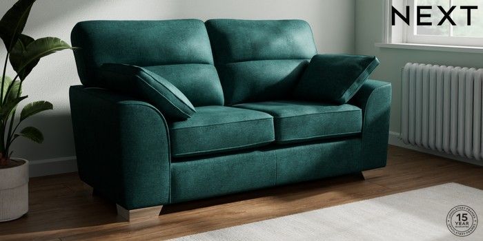 7.3.1 Buy Stamford Highback 2 Seater Sofa Plush Chenille Dark Teal Green Large Square Angle - Chrome Metal from the Seasons online shop Click here to use our website with more accessibility support, for example screen readers
