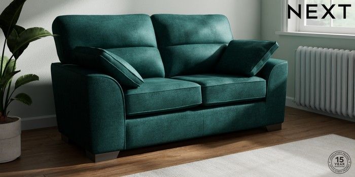 7.3.1 Buy Stamford Highback 2 Seater Sofa Plush Chenille Dark Teal Green Large Square Angle - Gunmetal from the Seasons online shop Click here to use our website with more accessibility support, for example screen readers