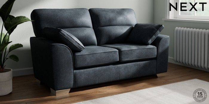 7.3.1 Buy Stamford Highback 2 Seater Sofa Plush Chenille Slate Blue Large Square Angle - Chrome Metal from the Seasons online shop Click here to use our website with more accessibility support, for example screen readers