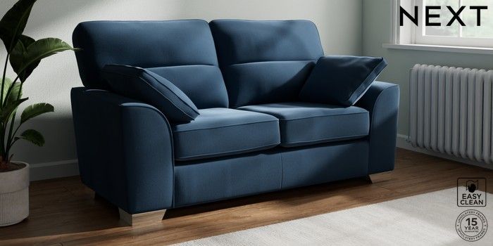 7.3.1 Buy Stamford Highback 2 Seater Sofa Plush Velvet Easy Clean Airforce Blue Large Square Angle - Chrome Metal from the Seasons online shop Click here to use our website with more accessibility support, for example screen readers