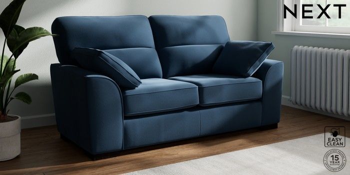 7.3.1 Buy Stamford Highback 2 Seater Sofa Plush Velvet Easy Clean Airforce Blue Large Square Angle - Dark from the Seasons online shop Click here to use our website with more accessibility support, for example screen readers