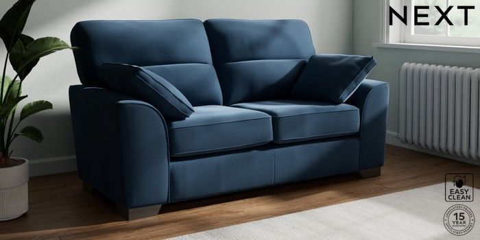 7.3.1 Buy Stamford Highback 2 Seater Sofa Plush Velvet Easy Clean Airforce Blue Large Square Angle - Gunmetal from the Seasons online shop Click here to use our website with more accessibility support, for example screen readers