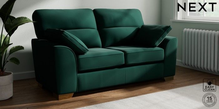 7.3.1 Buy Stamford Highback 2 Seater Sofa Plush Velvet Easy Clean Bottle Green Large Square Angle - Brushed Brass from the Seasons online shop Click here to use our website with more accessibility support, for example screen readers