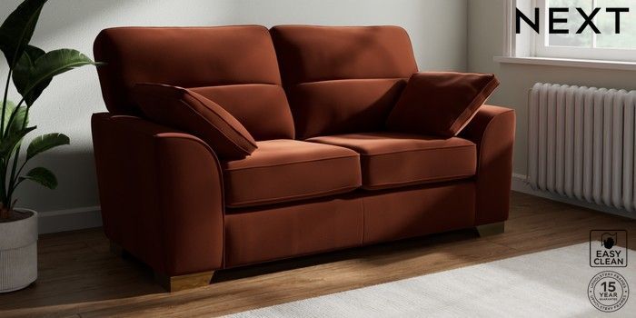 7.3.1 Buy Stamford Highback 2 Seater Sofa Plush Velvet Easy Clean Ginger Orange Large Square Angle - Brushed Brass from the Seasons online shop Click here to use our website with more accessibility support, for example screen readers