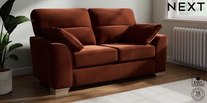7.3.1 Buy Stamford Highback 2 Seater Sofa Plush Velvet Easy Clean Ginger Orange Large Square Angle - Chrome Metal from the Seasons online shop Click here to use our website with more accessibility support, for example screen readers