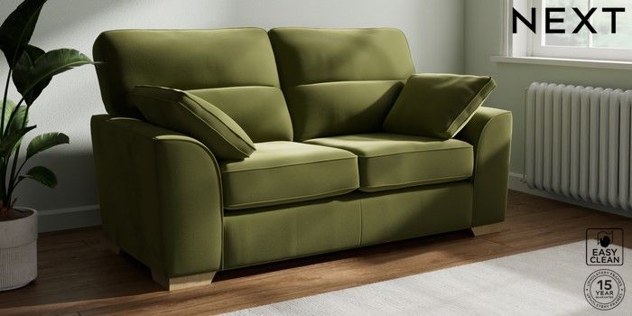 7.3.1 Buy Stamford Highback 2 Seater Sofa Plush Velvet Easy Clean Mid Olive Green Large Square Angle - Light from the Seasons online shop Click here to use our website with more accessibility support, for example screen readers