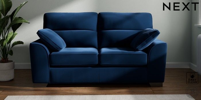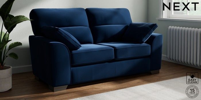 7.3.1 Buy Stamford Highback 2 Seater Sofa Plush Velvet Easy Clean Navy Blue Large Square Angle - Gunmetal from the Seasons online shop Click here to use our website with more accessibility support, for example screen readers