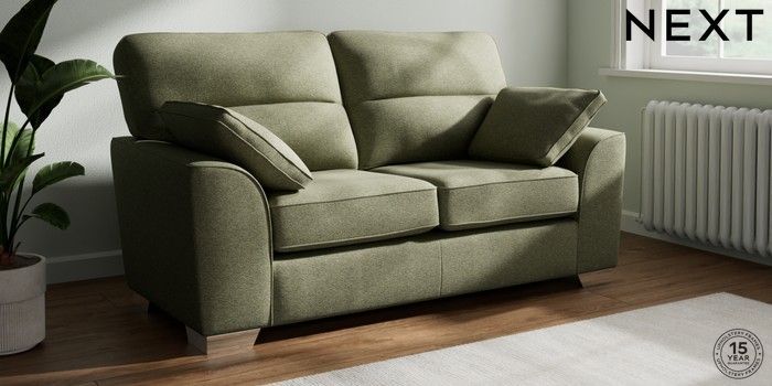 7.3.1 Buy Stamford Highback 2 Seater Sofa Tweedy Chenille Mid Moss Green Large Square Angle - Chrome Metal from the Seasons online shop Click here to use our website with more accessibility support, for example screen readers