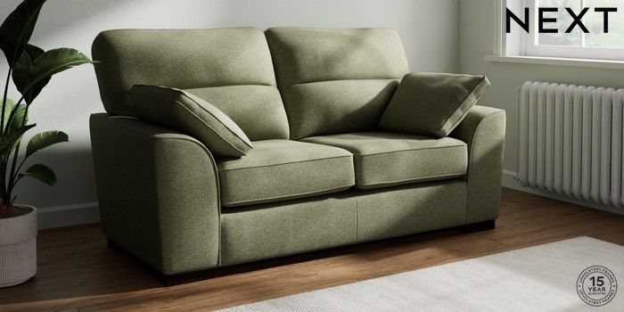 7.3.1 Buy Stamford Highback 2 Seater Sofa Tweedy Chenille Mid Moss Green Large Square Angle - Dark from the Seasons online shop Click here to use our website with more accessibility support, for example screen readers
