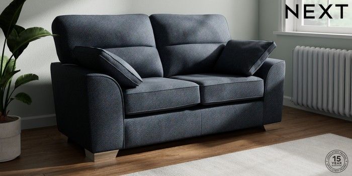 7.3.1 Buy Stamford Highback 2 Seater Sofa Tweedy Chenille Navy Blue Large Square Angle - Chrome Metal from the Seasons online shop Click here to use our website with more accessibility support, for example screen readers