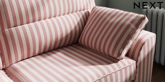 7.3.1 Buy Stamford Highback 3 Seater Sofa Bold Chenille Stripe Dark Pink Large Square Angle - Brushed Brass from the Seasons online shop Click here to use our website with more accessibility support, for example screen readers