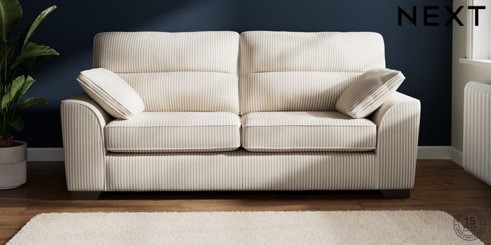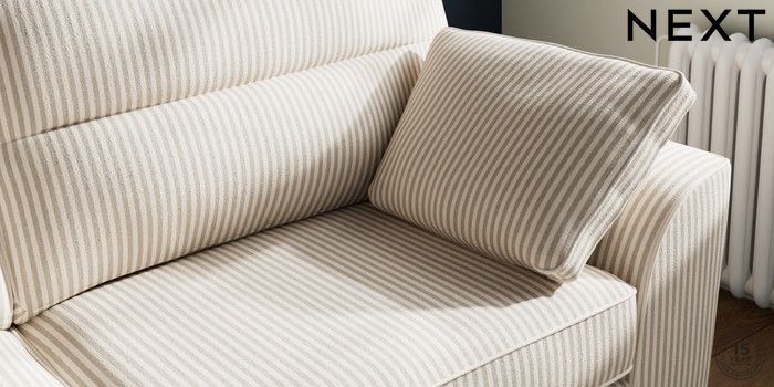 7.3.1 Buy Stamford Highback 3 Seater Sofa Chenille Stripe Natural Large Square Angle - Gunmetal from the Seasons online shop Click here to use our website with more accessibility support, for example screen readers
