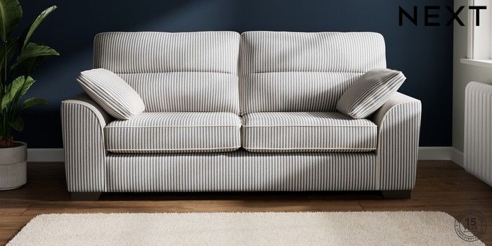 7.3.1 Buy Stamford Highback 3 Seater Sofa Chenille Stripe Slate Blue Large Square Angle - Gunmetal from the Seasons online shop Click here to use our website with more accessibility support, for example screen readers