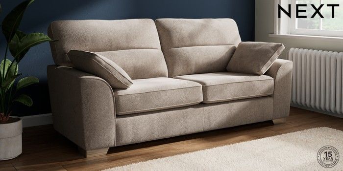 7.3.1 Buy Stamford Highback 3 Seater Sofa Chunky Chenille Light Dove Large Square Angle - Chrome Metal from the Seasons online shop Click here to use our website with more accessibility support, for example screen readers