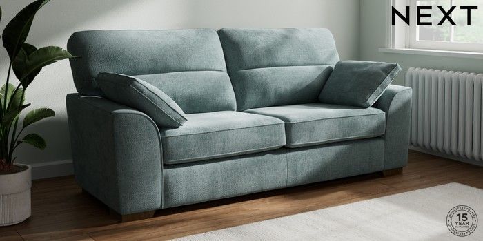 7.2.10 Buy Stamford Highback 3 Seater Sofa Chunky Chenille Light Teal Green Large Square Angle - Mid from the Seasons online shop Click here to use our website with more accessibility support, for example screen readers