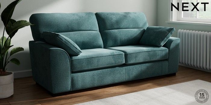 7.2.10 Buy Stamford Highback 3 Seater Sofa Chunky Chenille Mid Teal Green Large Square Angle - Dark from the Seasons online shop Click here to use our website with more accessibility support, for example screen readers