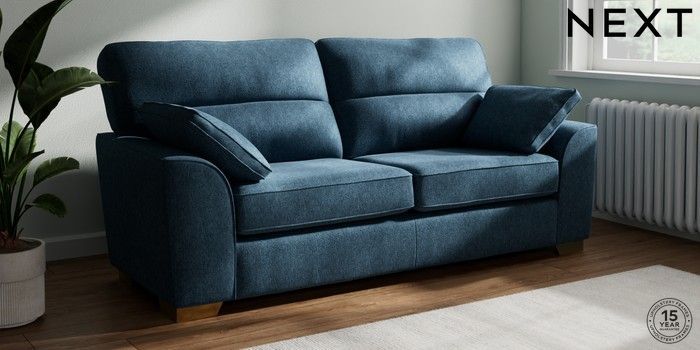 7.3.1 Buy Stamford Highback 3 Seater Sofa Cotswold Chenille Dark Blue Large Square Angle - Brushed Brass from the Seasons online shop Click here to use our website with more accessibility support, for example screen readers