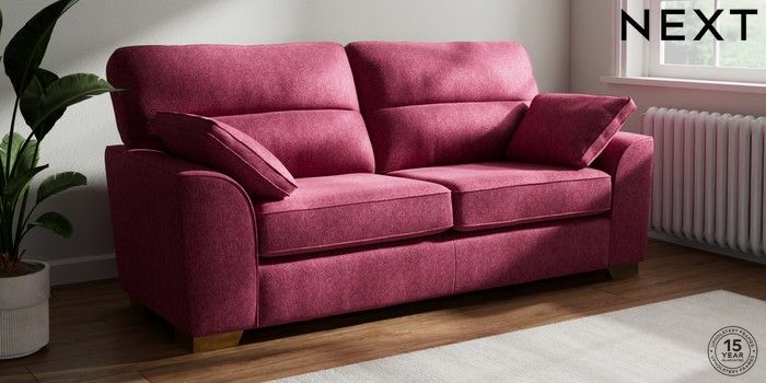 7.2.10 Buy Stamford Highback 3 Seater Sofa Cotswold Chenille Dark Raspberry Pink Large Square Angle - Brushed Brass from the Seasons online shop Click here to use our website with more accessibility support, for example screen readers