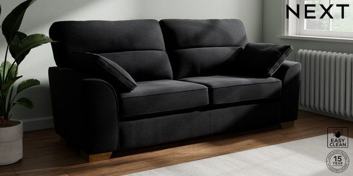 7.2.10 Buy Stamford Highback 3 Seater Sofa Fine Chenille Easy Clean Black Large Square Angle - Brushed Brass from the Seasons online shop Click here to use our website with more accessibility support, for example screen readers