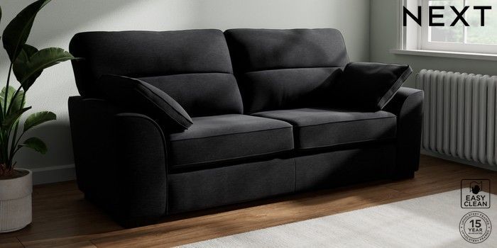 7.2.10 Buy Stamford Highback 3 Seater Sofa Fine Chenille Easy Clean Black Large Square Angle - Dark from the Seasons online shop Click here to use our website with more accessibility support, for example screen readers