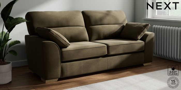 7.2.10 Buy Stamford Highback 3 Seater Sofa Fine Chenille Easy Clean Dark Moss Green Large Square Angle - Light from the Seasons online shop Click here to use our website with more accessibility support, for example screen readers