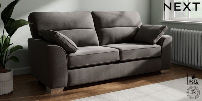 7.3.1 Buy Stamford Highback 3 Seater Sofa Fine Chenille Easy Clean Dark Smoke Grey Large Square Angle - Chrome Metal from the Seasons online shop Click here to use our website with more accessibility support, for example screen readers