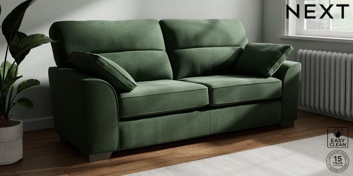 7.3.1 Buy Stamford Highback 3 Seater Sofa Fine Chenille Easy Clean Mid Khaki Green Large Square Angle - Gunmetal from the Seasons online shop Click here to use our website with more accessibility support, for example screen readers